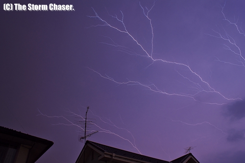 CMOS電子シャッターで雷を撮影すると、画像の一部が欠けたり、明暗差が出たりすることがあります。センサーの配列によるもので、CMOSの場合、ライン露光順次読み出しのため、雷のような瞬間的に強い光を発するものを撮影すると、露光タイミングのズレが生じてしまうことがあり、画像の明暗差となって現れます。それがローリングシャッター現象です。スマートフォンや高速連写を売りにしているコンパクトデジカメなど、CMOS電子シャッター採用のデジカメで顕著に現れます。明暗差以外にも、動くものを撮影すると歪みが出ることもあります。
