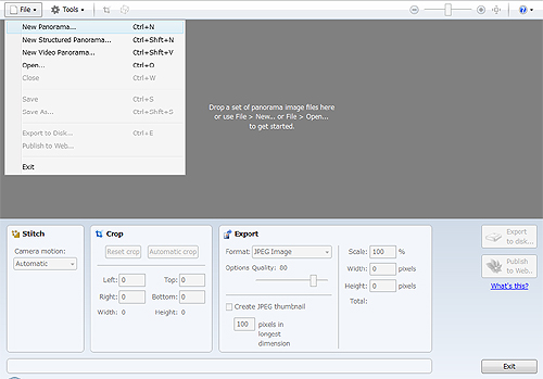 では、実際にパノラマ画像を作成してみましょう。FileからNew Panoramaをクリックします。