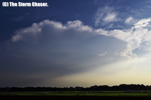 2013年7月9日、10日、北関東で昇温により大気の状態が不安定になり、一部で積乱雲が発達しました。9日は夕方頃から埼玉県北部で積乱雲が発達、見事なかなとこ雲が現れました。かなとこ雲の接近に先駆けてガストフロントの通過も見られ、かなとこ部分には乳房雲も現れました。通過時には漏斗雲が現れ、一瞬身構えましたが、竜巻になることはありませんでした。