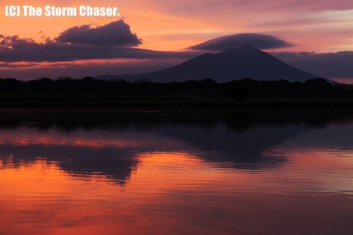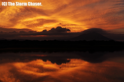 2015年10月1日、日本海にある低気圧が北東方向へ進んでいます。今後急速に発達し、爆弾低気圧になると見られています。午後になり北関東の内陸でも雨が降り出しましたが、午前中はまだ日射しもあり、日の出前には燃えるような朝焼けが見られました。筑波山の撮影スポットとして有名な、茨城県筑西市の母子島(はこじま)遊水地からの眺めは最高でした。朝焼けと同時に、筑波山にかかる笠雲も見られました。笠雲は湿った空気が山の頂を越える時に現れる雲で、雨や風の前兆と言われています。北関東には、日光蓑に筑波笠という天気のことわざがあります。山に雲がかかるのは天気が崩れる合図、という意味です。単なることわざではなく、科学的裏付けもあるので馬鹿に出来ません。天気図やレーダーと合わせて活用したい、先人たちの知恵です。