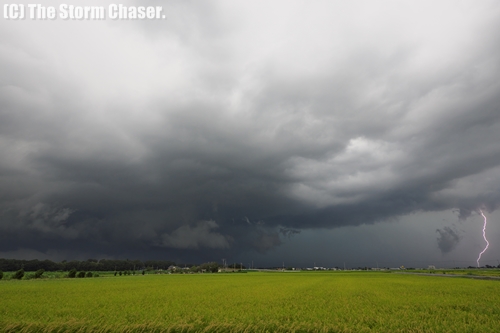 2016年8月23日、寒気を伴う気圧の谷の影響により北関東で大荒れの天気になりました。午前中は沿岸と山沿い、午後には内陸の平野部でも雷雲が発達しました。栃木県真岡市から下野市にかけて追跡を行いましたが、真岡に入る頃には落雷が見えアーチ雲が迫り冷たい風が吹き抜けました。ほどなくして大粒の雨が落ちてきたため、西隣の栃木県下野市方面に移動、雲底がマーブル模様になり激しく対流している様子が見て取れました。その後は帰宅時間帯と豪雨が重なり各地で渋滞が発生、追跡を断念せざるを得ませんでした。
