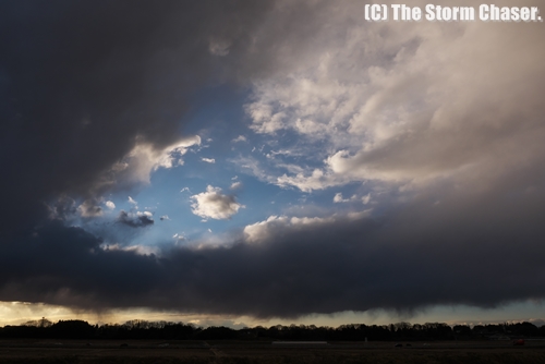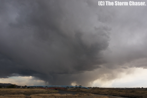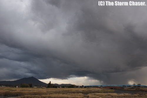 冬の積乱雲は夏と違い背が低く、一見すると雄大積雲のように見えますが、雲底を見ると発達した積乱雲であることがわかります。見た目にも威圧感があり、指先の感覚が無くなるような冷たい強風が吹き荒れました。まるで日本海側のような天気でした。