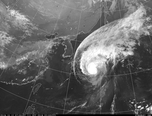出典…気象庁ホームページ・台風19号ハギビスの衛星写真。