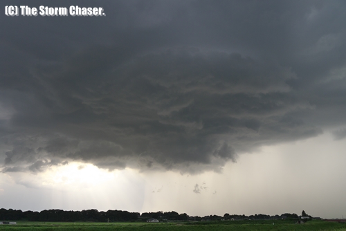回転を伴う積乱雲の雲底、気流の渦が生じている。スーパーセルの特徴だ。