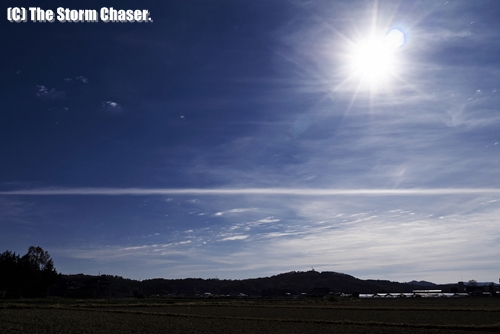 © Yutaka Aoki. All rights reserved.上の写真は12月2日の午前11時頃、栃木県真岡市と益子町の境で撮影した筋雲です。筋状の雲が放射状に広がり、青空とのコントラストも見事だったため、思わず脇道に入り車を止めて撮影してしまいました。強い寒気が入ると筋雲が見られるのは、ベナール対流が関係しています。ベナール対流を簡単に説明すると、上層と下層で温度差が生じた時に現れる、規則的なパターンを持つ対流です。それにより生じた規則的な形の雲(巻積雲)が、強い季節風に乗って筋状にのびて行きます。