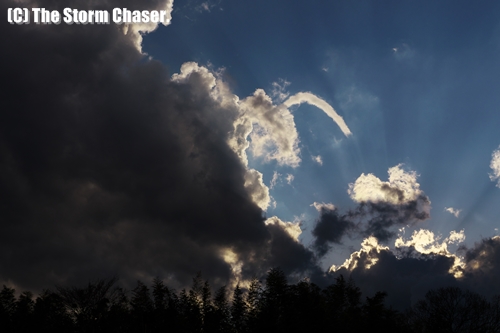 漏斗雲(Funnel Cloud)とは、竜巻に伴って積乱雲や積雲の雲底に現れる、漏斗状、または細長い形状の付随雲(副変種)で、北半球では反時計回りの回転を伴います。上昇気流により吸い上げられた暖かな空気が急激な気圧の低下と断熱膨張により冷やされ、水滴となって垂れ下がり、漏斗雲を形成します。漏斗雲が地上に達すると、上昇気流を伴う渦がより強くなり竜巻となります。竜巻発生の前後には、急激な気圧の変化により耳鳴りや圧迫感を感じます。飛行機の離陸時や、高層ビルのエレベーターに乗った際に感じる違和感と同じような感覚です。