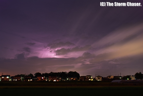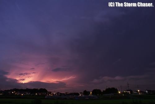 2011年8月24日のアーカイブより日没直後の雷雨を掲載します。この日は暖かく湿った空気が流れ込んだ影響で、日中は千葉県北部から茨城県の沿岸部で、夕方以降は北関東の内陸で対流雲が発達しました。栃木県宇都宮市では40mm/hの雨を観測、夜半過ぎまで栃木県内に雷雨をもたらしました。この日は茨城県と栃木県の県境付近から撮影していました。19時前、雲の切れ間から一瞬夕焼けが見え、音もなく雲間雷(Anville Crawler)が雲底を這うのが見えました。