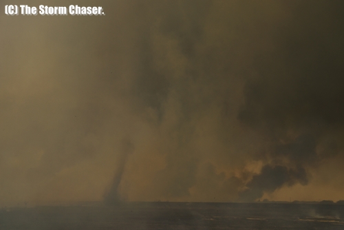 強烈な風切り音とともに発生した、竜巻状の火災旋風。© Yutaka Aoki. All rights reserved.