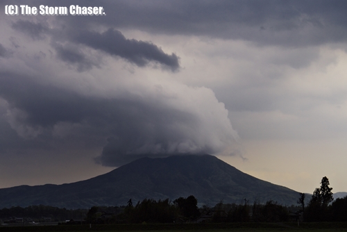 15時20分過ぎくらいから積乱雲の雲底付近に積雲の列が見られるようになりました。ガストフロントの発生です。この頃から急激に気温が下がり始め、20℃以上あった気温が9℃台まで急降下、あまりの寒さに車に常備しているレインウェアを着込んで撮影しました。この時間帯、風向きも南寄りから北寄りに急変しています。ガストフロントが発生すると、気温の急降下と風向きの急変が起こります。通過時には風が強まるので、注意が必要です。