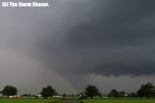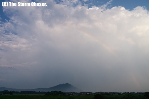今回、撮影場所に恵まれ、雲の動きや変化など、一部始終を見ることができてラッキーでした。積乱雲が頭上を通過した後にはすぐに日が射し、アーチ雲(ガストフロント)に虹が掛かるシーンに遭遇しました。思いがけず良いシーンに出会え、気分よく撮影を終えることができました。
