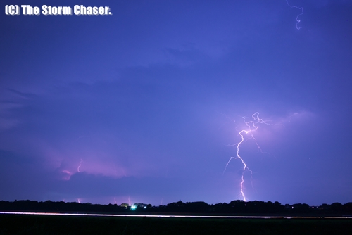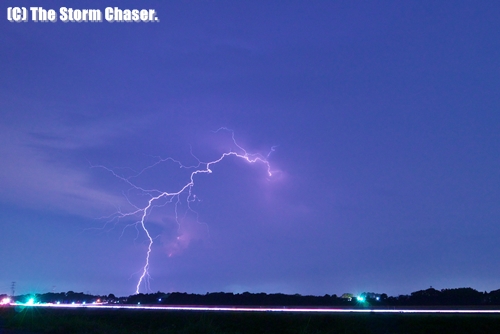 10日に撮影した動画では、落雷の後に送電設備がショートするシーンが映っています。最初のシーン画面左下に注目して下さい。追跡シーンでは消えた信号機も映っています。9日の映像は全て屋外での撮影ですが、10日は雷雲の真っ只中に突入したため、全編車の中から撮影しています。
