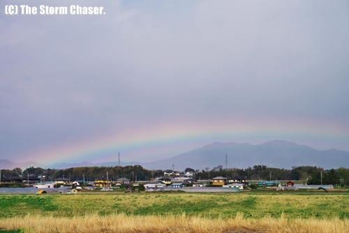 15時20分過ぎくらいから積乱雲の雲底付近に積雲の列が見られるようになりました。ガストフロントの発生です。この頃から急激に気温が下がり始め、20℃以上あった気温が9℃台まで急降下、あまりの寒さに車に常備しているレインウェアを着込んで撮影しました。この時間帯、風向きも南寄りから北寄りに急変しています。ガストフロントが発生すると、気温の急降下と風向きの急変が起こります。通過時には風が強まるので、注意が必要です。