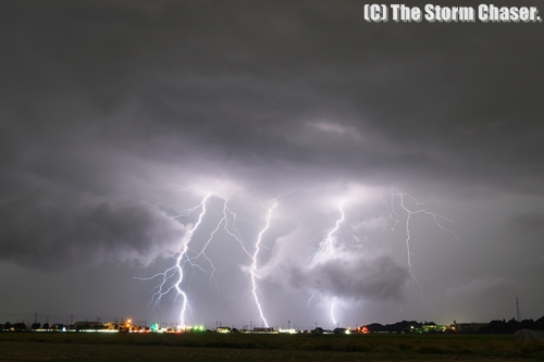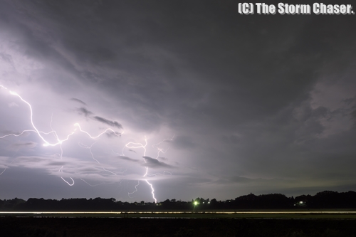 ■夜の暗い時間帯、最も簡単に撮影できる時間帯です。基本は花火と同じで、ISO感度を最低(拡張はしない)に設定し、バルブ撮影でとらえます。絞りは開放からF8程度、60秒を超えたらシャッターを切り直します。沢山の稲妻を写し込みたい場合は、絞りをF16~F22程度まで絞り込むと露出オーバーを防げます。スターマインの撮影と同じ感覚です。ノイズリダクションは好みで構いませんが、ONにすると撮影間隔が長くなあるため、取り逃しも多くなります。