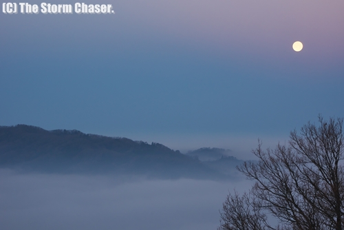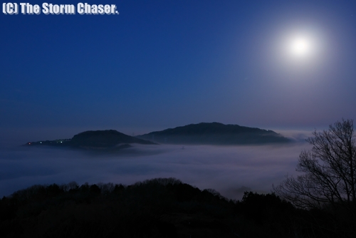 ■薄明の時間帯、比較的撮りやすい時間帯です。ISO感度は最低感度~800程度、シャッター速度を1/30秒~1/4秒程度に設定して撮影します。周りが薄暗い分、稲妻の確認が容易なうえ、空色などの雰囲気もよく、私が最も好きな時間帯です。稲妻を目視でとらえてからシャッターを切っても十分間に合うので、何度も撮影してタイミングを覚えて下さい。少なからず明るさが残っているため周りの状況も判断しやすく、安全面から考えてもこの時間帯がおすすめです。