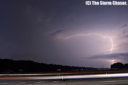 その後は栃木県を後に、茨城県方面へ南下しました。茨城県筑西市でもガストフロントを確認、漏斗雲も発生しています。激しい落雷が夜のはじめ頃まで続き、結果的に今シーズン1番の撮れ高になりました。雷が少なかった今年の夏、終盤に来て挽回しつつあります。