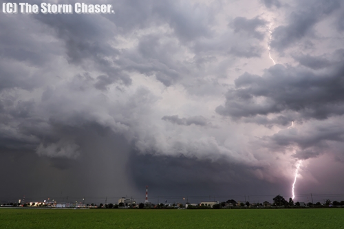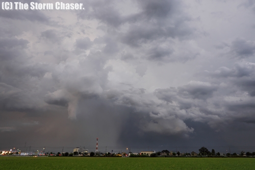 2018年8月25日、台風20号の通過後に厳しい残暑がやって来た北関東です。地元、茨城県筑西市では37.7℃と観測史上1位を更新、群馬県伊勢崎市や茨城県古河市では38℃を超える暑さになりました。気温が上がれば午後になって雷雲がモクモクわいてきます。栃木県北部では昼過ぎから雷雨になり、夕方以降は南下して栃木県南部や茨城県でも激しい雷雨になりました。栃木県真岡市では夏まつりの会場で屋台のテントが強風で吹き飛ぶ被害が出ています。当日は祭りの会場から東に約1kmの地点で撮影しており、被害の出た時刻にガストフロントの通過を確認しています。