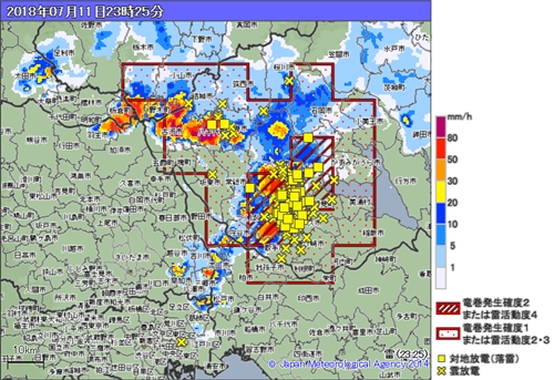 2018年7月11日、北関東に雷雨の季節がやってきました。夜のはじめ頃から夜半頃にかけて、栃木県・茨城県を中心に激しい雷雨になりました。スローペースな今シーズン、やっと北関東に夏が来たような気分です。梅雨の後半からずっと少雨傾向でしたが、これで少しは潤ったでしょうか。