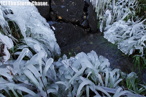 2017年1月25日・26日、全国的に厳しい冷え込みになり、地元(茨城県筑西市/下館)では1月25日朝に-8.5℃、翌26日朝に-7.2℃を記録しました。1月25日、筑波山中腹にある筑波山神社(標高270m)に少し遅い初詣に行くと、珍しい光景を目にすることが出来ました。拝殿の階下に水路の水が滴り落ちる場所があるのですが、飛び散った水で周囲の草木が凍りつき、まるで氷のオブジェのようになっていました。草木が凍った上に更に水が飛び散り、時間をかけてこのような造形になったのだと思われます。 TSC Portfolio