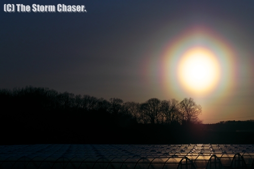 2016年3月15日、雨上がりに風が強まり、スギ花粉が大量飛散したため花粉光冠が現れました。光冠(Corona)は太陽に薄雲がかかった時に太陽光が回折することで現れますが、花粉光冠は大量の花粉が薄雲の代わりになって現れます。花粉症の方々には辛い時期ですが、時に空を見上げてみると面白い現象が見られるかもしれません。そういう私も花粉症なので、撮影後は大変です。