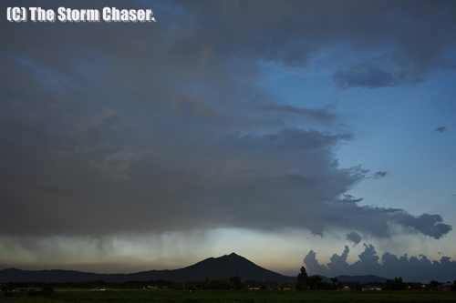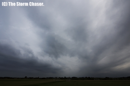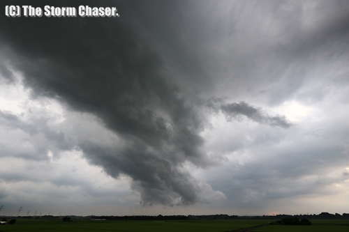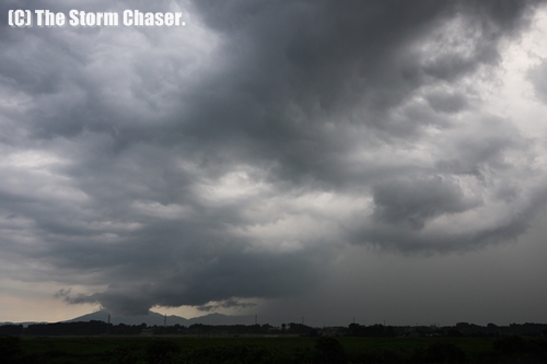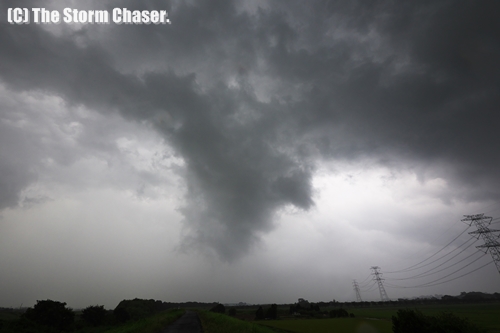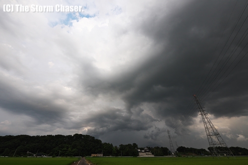 夕方になり、風が収束しているポイントに移動(茨城県筑西市、下妻市、つくば市、3市の隣接するあたり)。雨雲が湧いて出たと思ったら、急速に発達して雲底から雲が垂れ下がりました。回転する上昇気流域、メソサイクロンが可視化した壁雲(Wallcloud)です。17時50分頃~18時過ぎ頃に見られましたが、特に激しい現象は発生せず、ガストフロントによる冷たい風が吹き抜けた程度でした。茨城県筑西市、下妻市、つくば市、いずれも16時から18時頃にかけて、5℃前後気温が低下しています。急激な気温の低下は悪天候の前触れ、お盆休み真っ只中ですが、北関東では大気の不安定な状況が15日頃まで続きそうです。急な雨、落雷、突風にご注意を。