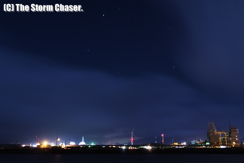 船見公園から、背の低い積乱雲の隙間から星が見える。© Yutaka Aoki. All rights reserved.