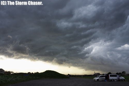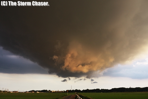 夕陽に染まり回転する壁雲、美しさと恐ろしさは表裏一体。© Yutaka Aoki. All rights reserved.