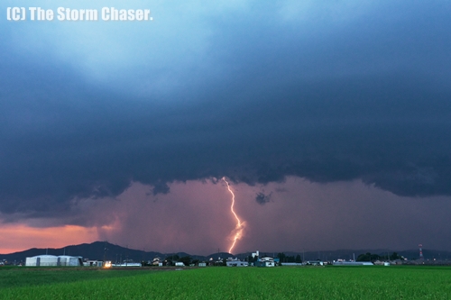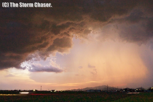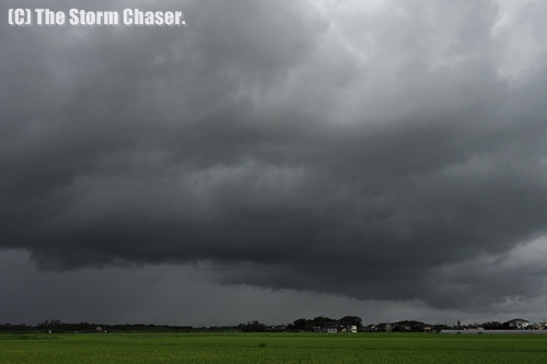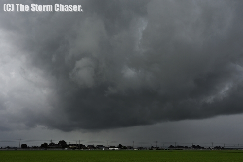 下野市付近でとらえた線状降水帯。雲底に渦も見える。© Yutaka Aoki. All rights reserved.