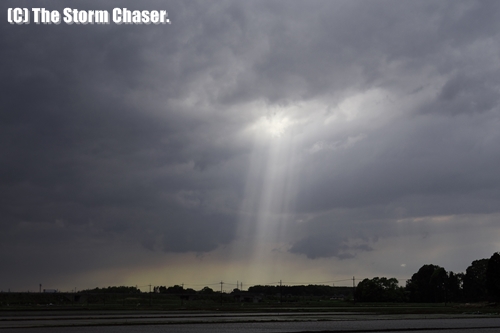 地元周辺は14時半~15時頃が荒天のピークでした。追跡中にアーチ雲を発見し、雲の真下に突入。通過中は最大瞬間風速20m/s前後の状態が15分~20分程度続きました。気温も10℃近く急降下、車に常備しているウィンドブレーカーを着込みましたが、それでも震えが来るほどの寒さでした。16時前には積乱雲が東に抜け、何ごともなかったような青空が広がりました。