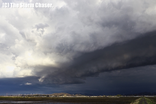 この日一番の収穫は、ガストフロントによるアーチ雲と反薄明光線の共演です。個々に見たことはあっても、同時に見たのは今回が初めてです。収穫の多い春嵐でした。