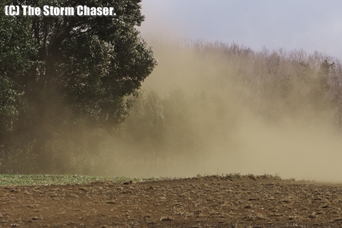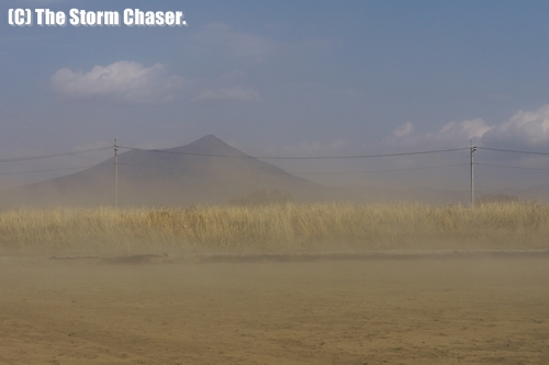 春一番とともにやって来るのが、厄介な現象風塵(ふうじん)です。今シーズン2度目の風塵撮影でしたが、前回は西寄りの冷たい風で寒さに震えながらの撮影でした。今回は気温も上がり、春本番といった陽気になりました。この日は思ったほど風が強まらなかったこと、田畑が湿っていて乾いた部分が少なかったこともあり、空を黄色く染めるような大規模な風塵にはなりませんでした。ちなみに、英語で風塵はBlowing Dust、砂塵嵐はDust Storm、と言います。